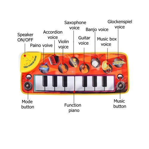 Touch Play Keyboard Musical Music Singing Carpet Mat Children Fun Casual Toy Piano blanket Features: 1. Beautiful and shape, pleasant melody. 2. The pleasing music fully exercises the development of the child's auditory system, helping the child to recognize the instrument and cultivate the musical beauty. 3. The flexible operation of the legs controls the development of large muscles and improves the coordination of the body. 4. When you press hard or step on the button, the light of the music box will be shining and the different buttons will make different sounds or music 5. This music pad by canvas takes three AA batteries (batteries are not included) Function: 1. Two shining lights. 2. Eight kinds of musical instrument and music. 3. One music button. 4. One mode button. 5. Eight piano function key Specification: Dimensions: 72*28cm/28.3*11in Age range:Under 14 years old Gender: Unisex Power by: 3*AA (not included) : Mulit- Material: Cloth / PVC / electronic components Package Included: 1 x Piano Music Mat Note: 1. Please allow 0.5-1cm differences due to manual measurement. 2. Due to the light and screen difference, the item's may be slightly different from the pictures.
