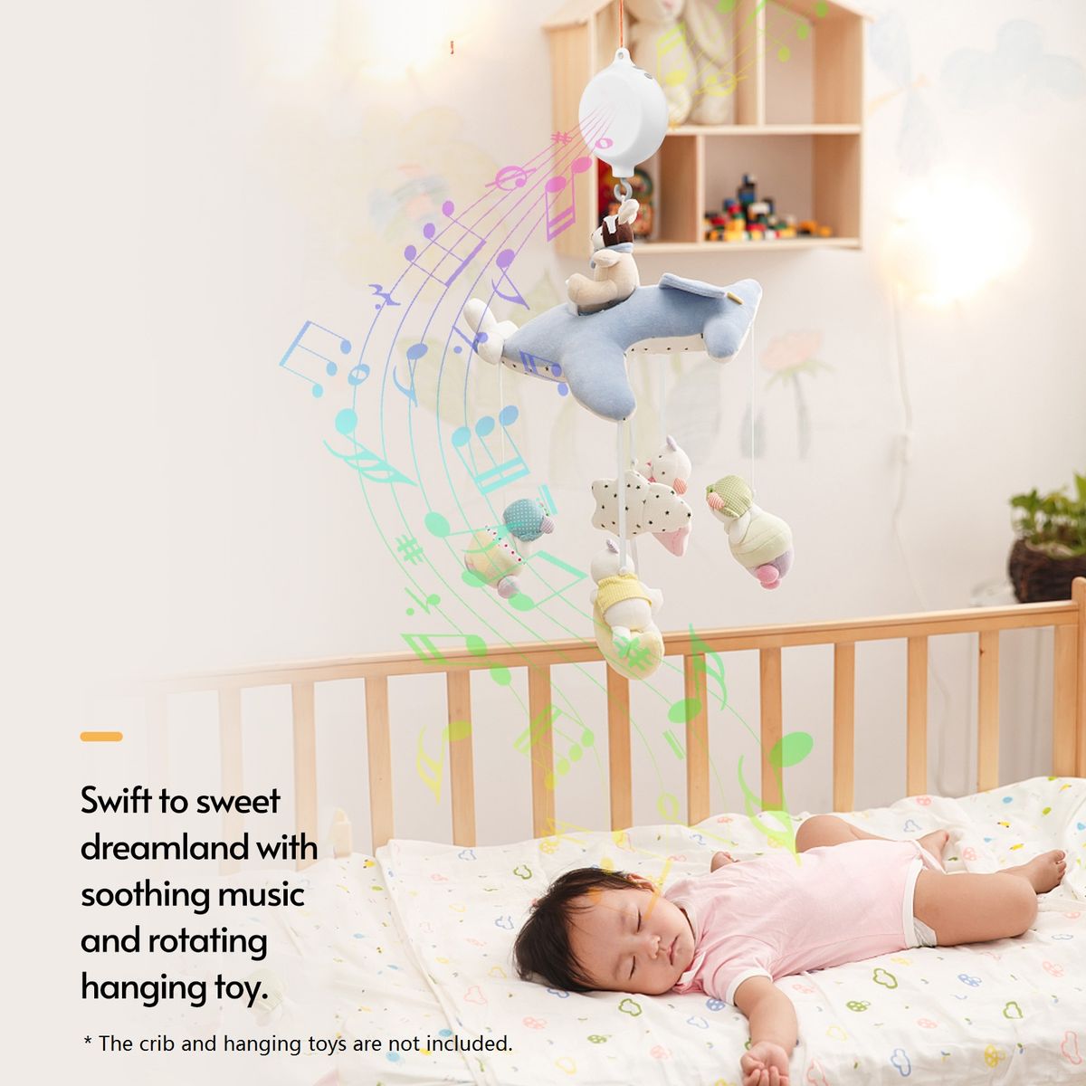 [Rotation Mode] Designed for hanging on the baby crib and hanging some bed ringing toys, it will rotate when music is playing, which can greatly sooth the baby.