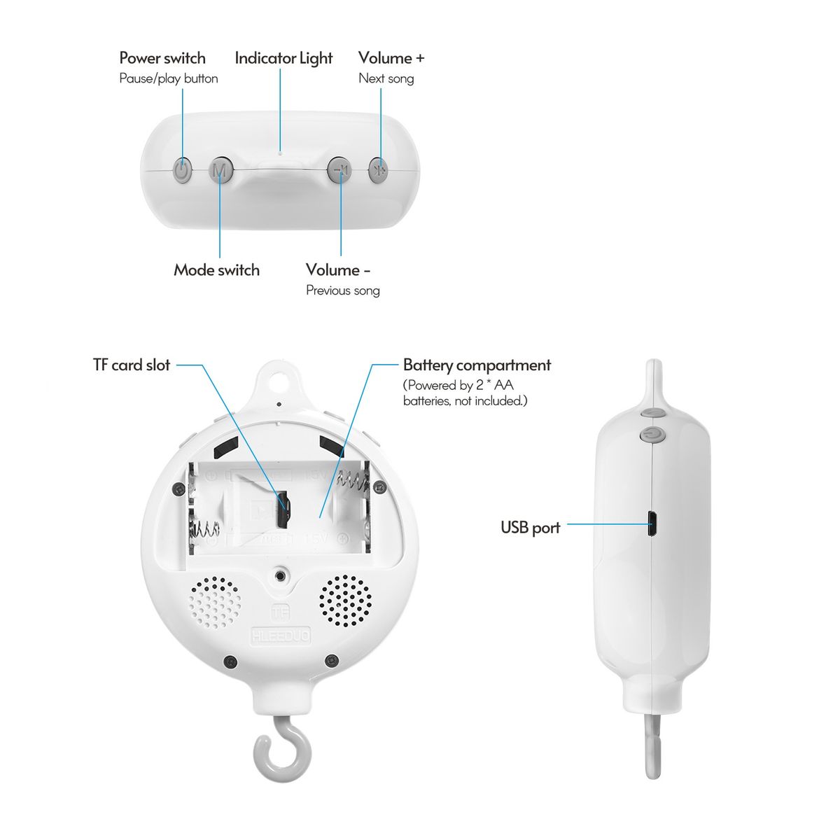 [Micro USB Port] You can download more soothing music for your kids freely via the included USB cable.