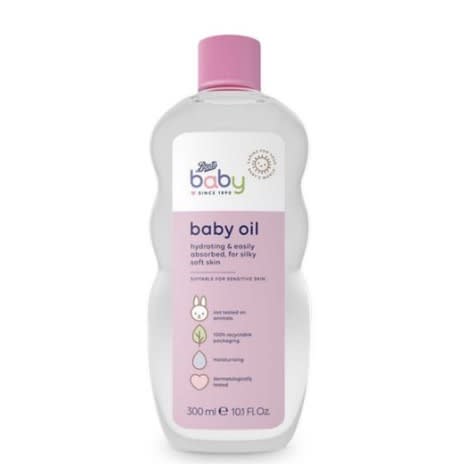 Baby oil is clinically proven to be gentle and mild for baby's skin, easy to spread, ideal for baby massage and relaxing bonding experience for you and your baby