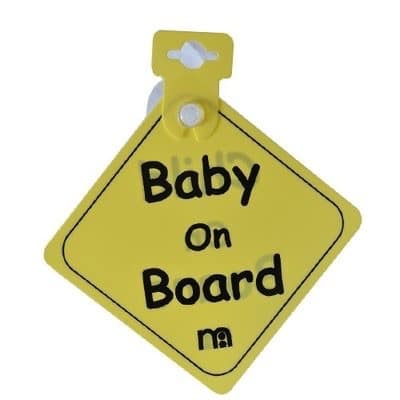 Improve your safety on the road with this "Baby On Board" Sign. Designed to attach to a vehicle window with suction cups, the bright color sign informs fellow travelers to drive carefully because precious cargo is on board. These classic car window signs are easily noticeable. They come in a pack of two for more than one vehicle. The classic baby on board sign attaches easily to your car window and reminds others to drive safely.
