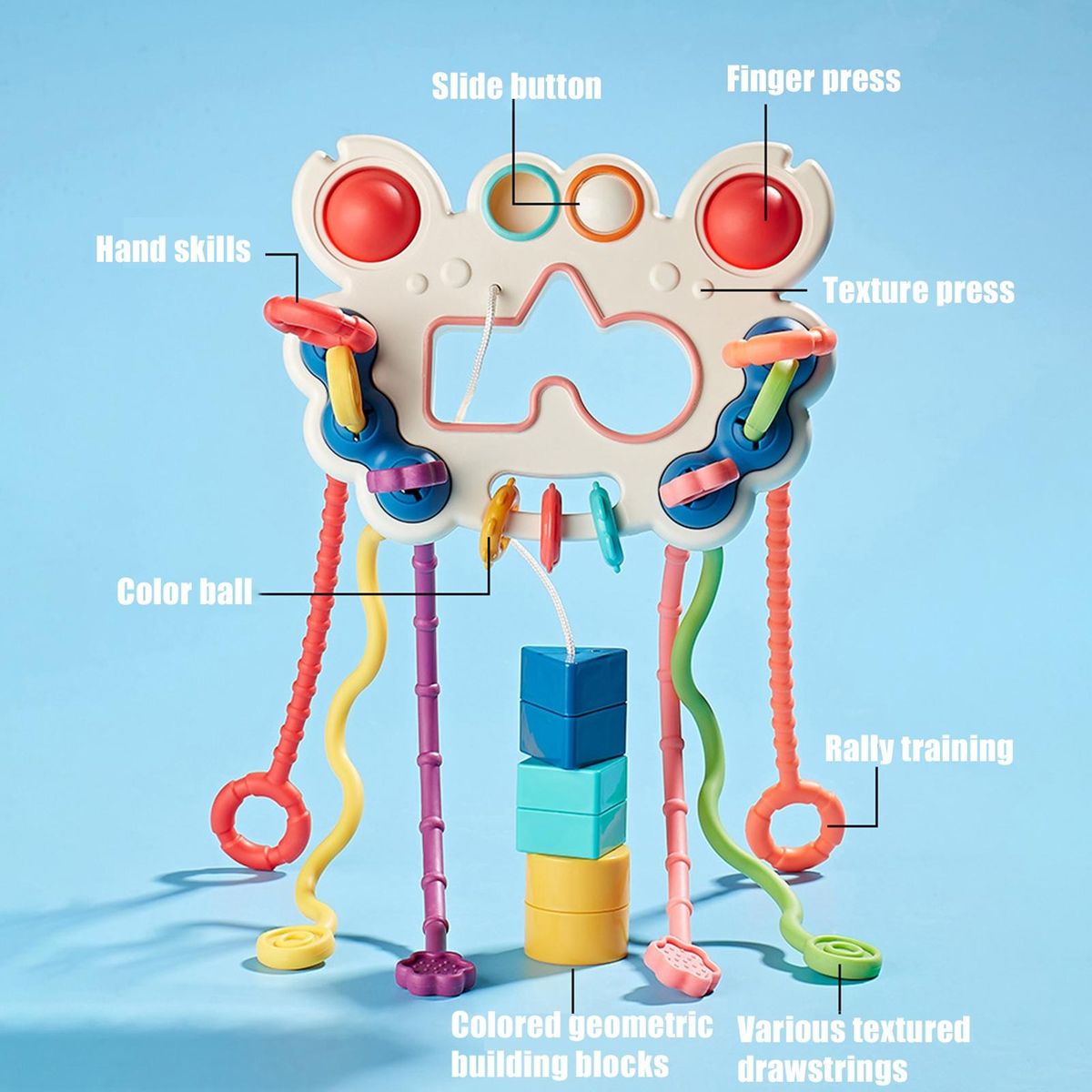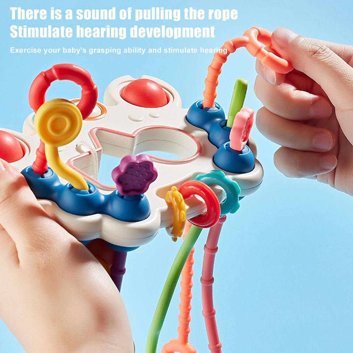 The baby pull rope sensory toy features 6 ropes of different textures and shapes, offering a rich tactile experience that promotes sensory development. it also helps to enhance your baby's fine hand motor skills.