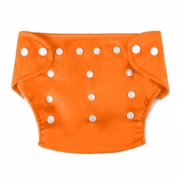 The nappies are one size. The size is easily adjustable as the baby grows from baby to toddler. It will fit babies from 3-13kg (0-3 years).The waist size and the length of the nappy can be easily adjusted depending on the press studs selected. The nappy length has 3 positions depending on how you join the 9 press studs on the front. The waist can be adapted for several sizes.