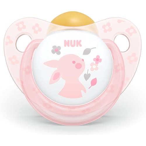 Simply add 40ml of water and microwave for 4 mins. (Time will vary depending on microwave power) This soother is perfect for sleeping as it doesn't have a ring, therefore prevents pressure marks while sleeping. The latex NUK shape is modelled on a mother’s nipple as she breastfeeds, which fits optimally into the mouth when baby sucks. The soother has a thin and narrow teat which reduces the pressure on jaws and teeth. The flat baglet and smooth underside offers a pleasant feeling in mouth and plenty of room for natural sucking movements.the This soother is perfect for sleeping