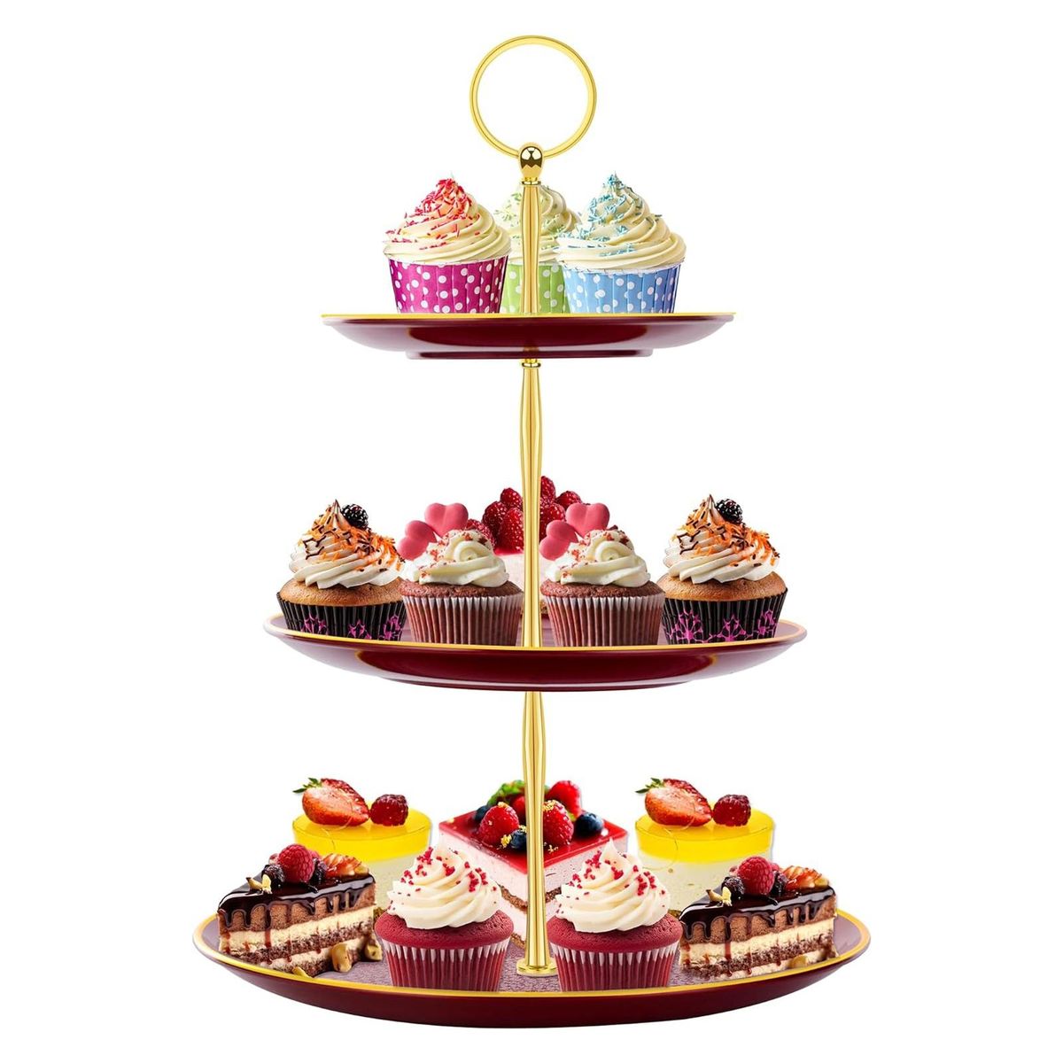 Buy Baby Shower Dessert Table Decor Golden Edged Cupcake Stand for Baby Wine Red in Nigeria