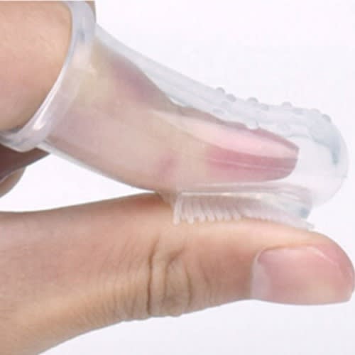 The finger-covered toothbrush is designed according to the shape of the mother's finger, made of food-grade silica gel, soft and elastic. Tartar and tongue coating may appear when the baby is teething. The front side of the finger-covered toothbrush can be used to clean the teeth, while the back side can clean the tongue coating.
