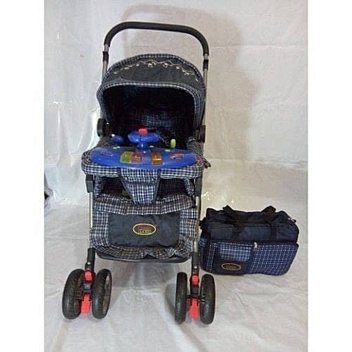 HAPPY FAMILY 3 -IN -1 BABY STROLLER (XXL SIZE) is an ultra-lightweight, yet sturdy, and designed for the active family. It has a removable child's tray and a stroller harness which helps keep your child securely seated. This stroller is designed to hold a child up to 18kg and it can also serve as a Baby cot.