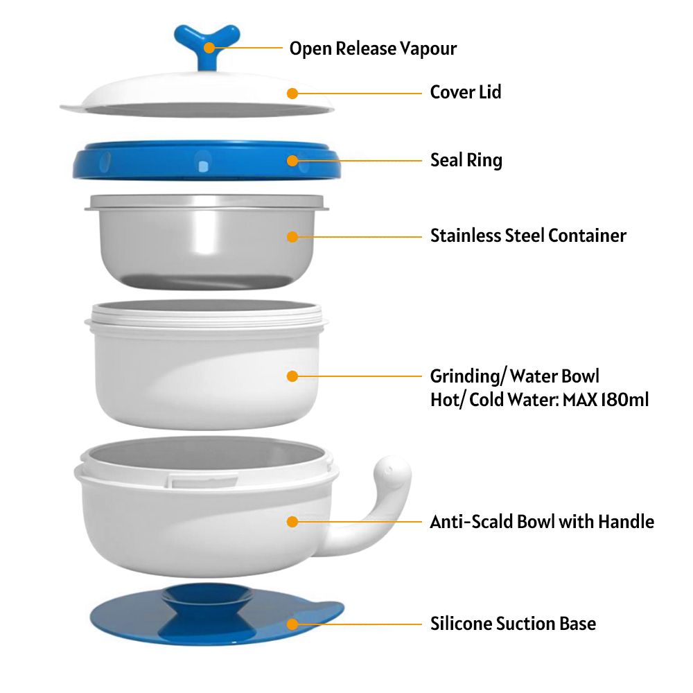 3-layer design: stainless steel bowl, water injection layer and anti-scald layer.