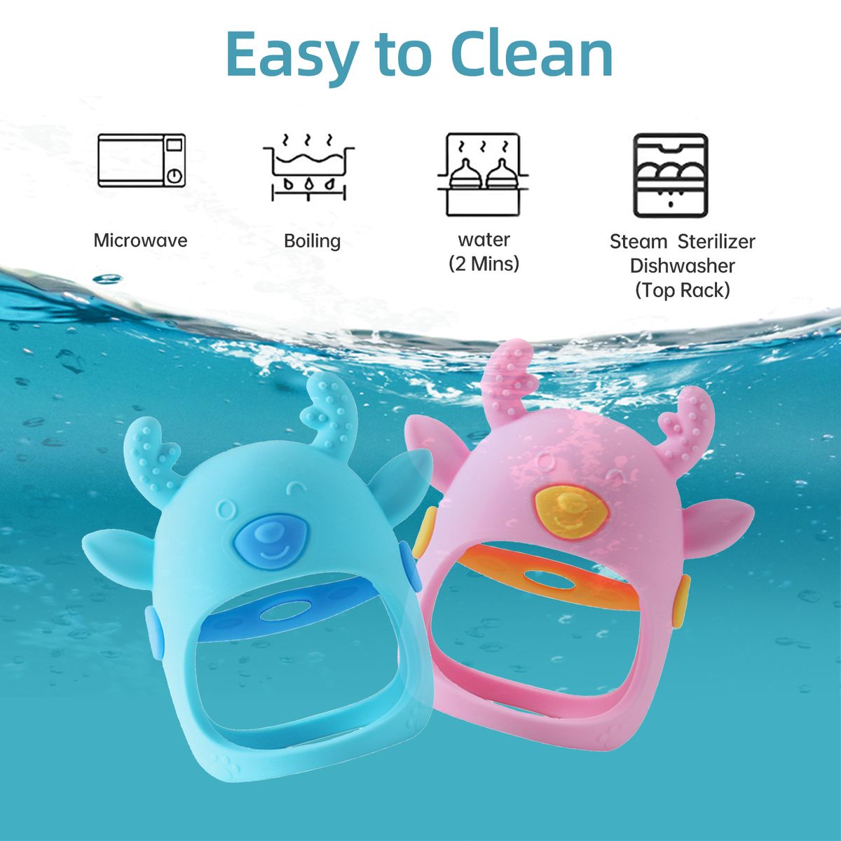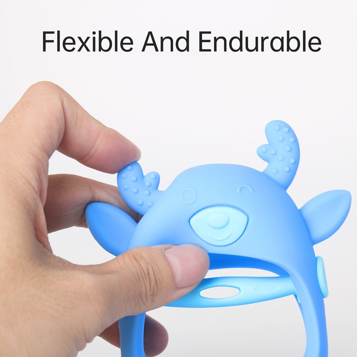 【Deer Shape Teething Mitten】The teething mitten is designed for over 3 months old infants with bumpy massage particles, which can help relieve discomfort during teething and prevent the baby from sucking and chewing fingers, protecting the baby\'s delicate gums and promote tooth development.