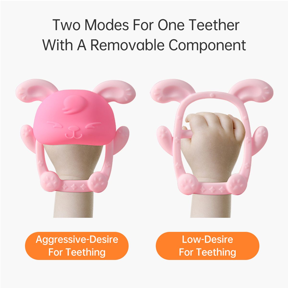 【Removable Component】There are two modes for each rabbit teething mitten to meet with baby\'s different states of mouth desire in that the component of the rabbit head is removable. You can detach the component at wish.