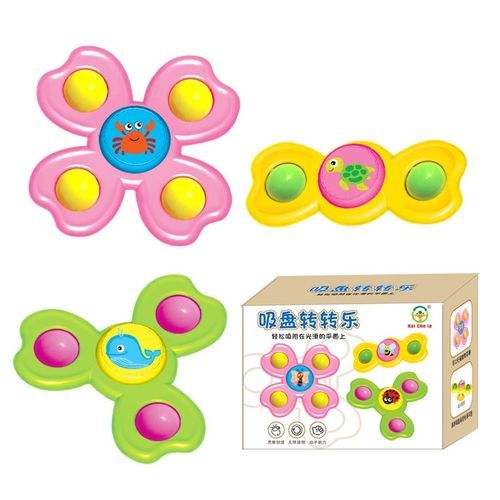 The spinner toy is with suction cup and can easily adsorb on a variety of flat and smooth surfaces. Cute puppy/frog/bear cartoon design, as well as can be rotating, which can well attract baby's attention to relieve baby crying when eating or bathing.