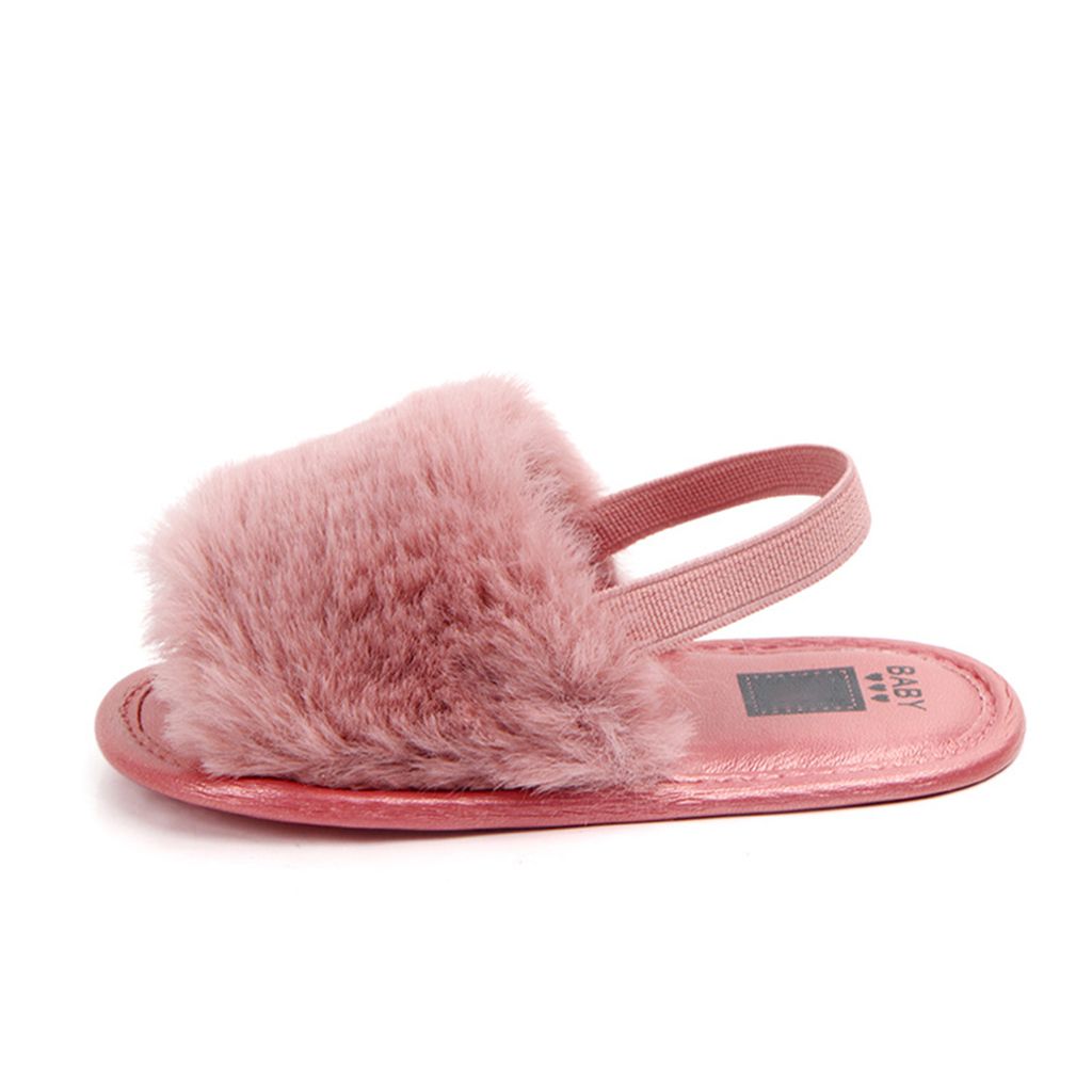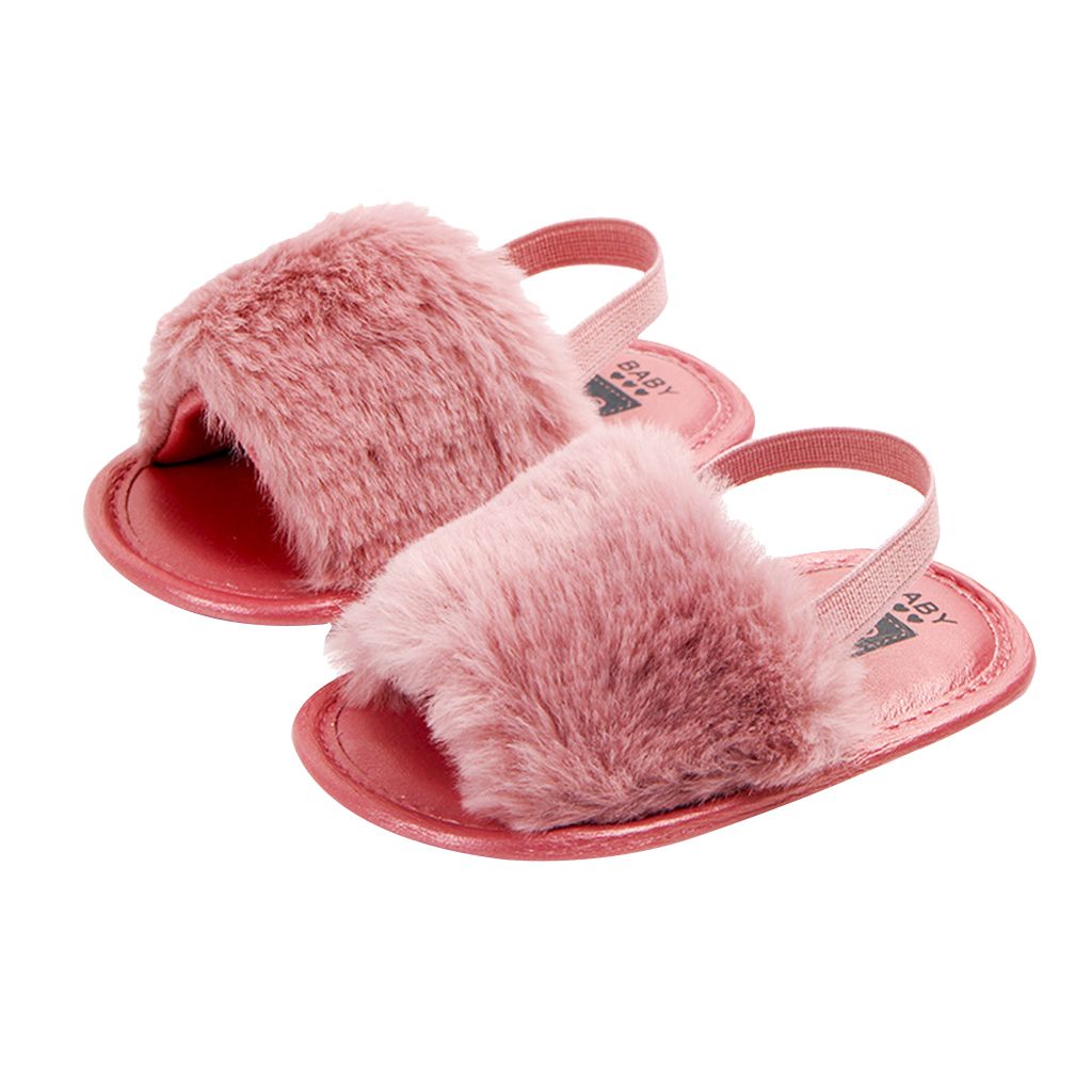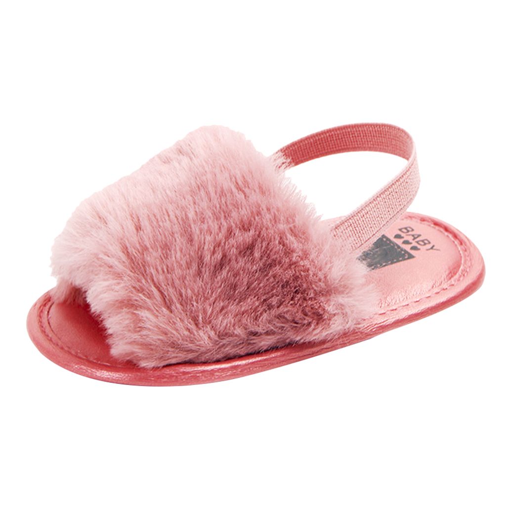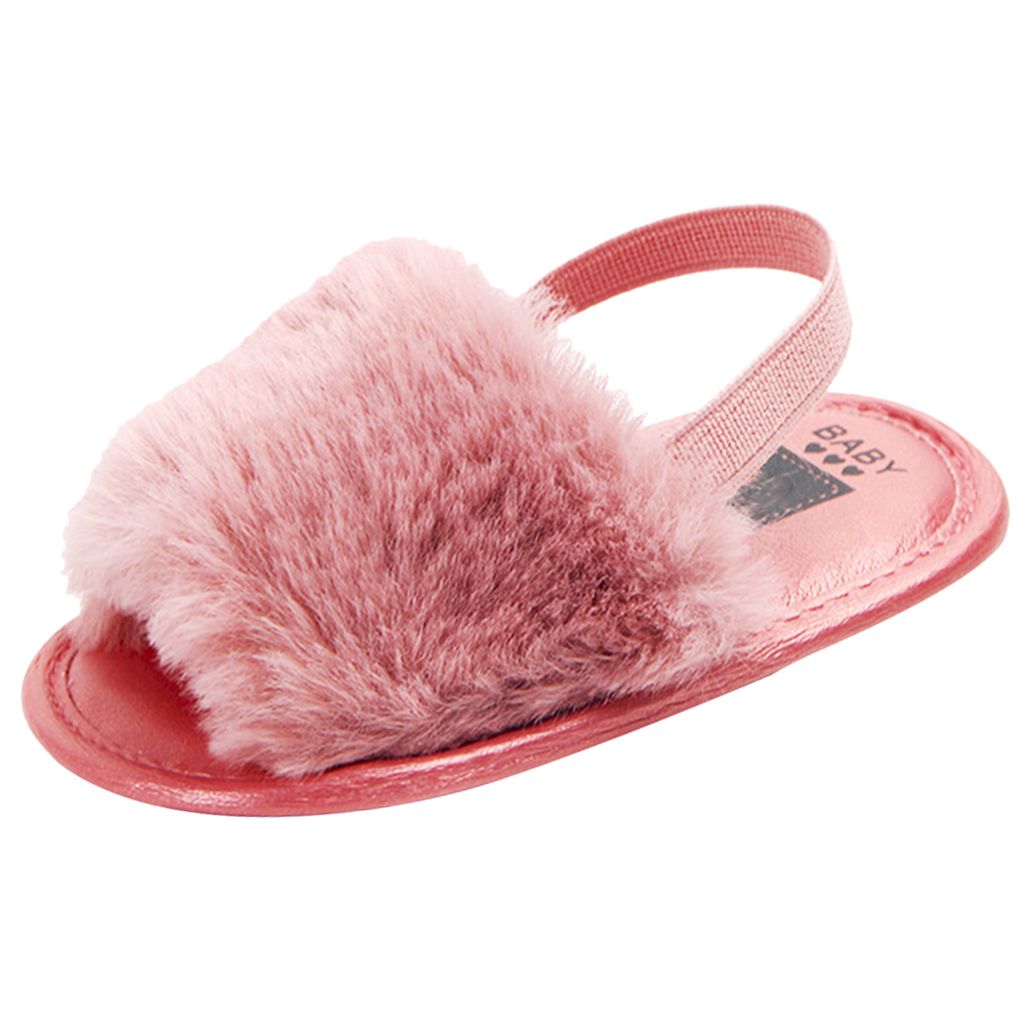 Toddler Baby Girl Kid Soft Sole Sandal Plush Slide Anti-slip Pram Crib Shoes.Upper material:PU and Plush, Sole material:Cloth.Soft and Anti-slip with plush design, which can Keep your baby comfortable and stable.Closure Type:Elastic band.Prefect for daily use and easy to take off or wear.