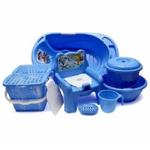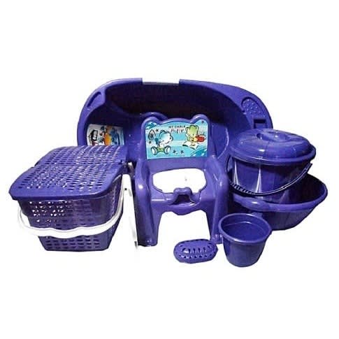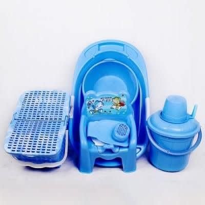 This baby bath set is essentials for keeping your little one clean and tidy.This item is very important for new born babies, without it having their bath is not completeThis product is very reliable, strong and durable Your children will fall in love with bathing if this bathing suit is available.This beautiful baby bath Set for New Born is a combination of a Bathing Bowl, Potty with Cover, a Storage box for children clothes or baby bathing tools, a Bowl for water and a covered plastic