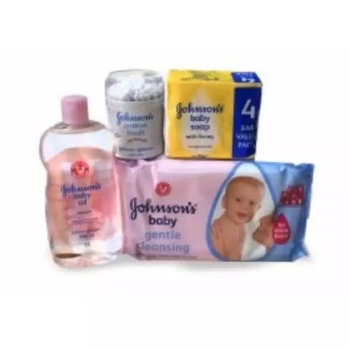 This set includes:One 4-pack Johnson's baby soap with honeyOne 100-pack Johnson's cotton budsOne pack of Johnson's baby wipesOne bottle of Johnson's baby oil