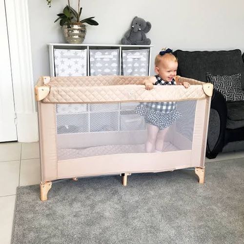 This my babiie grey stars travel cot is quick and easy to assemble and looks gorgeous. this great value travel companion is suitable from birth and comes complete with a handy carry bag with handles. we have made it lighter and easier to set up than ever so getting your little one to sleep is easier than ever. this travel cot can double up as a playpen and is a must have travel essential for babies.