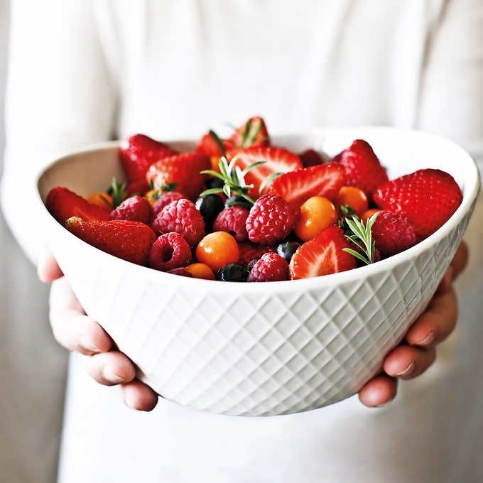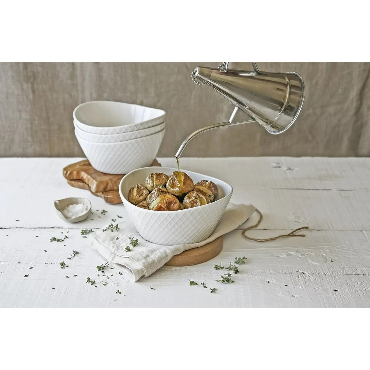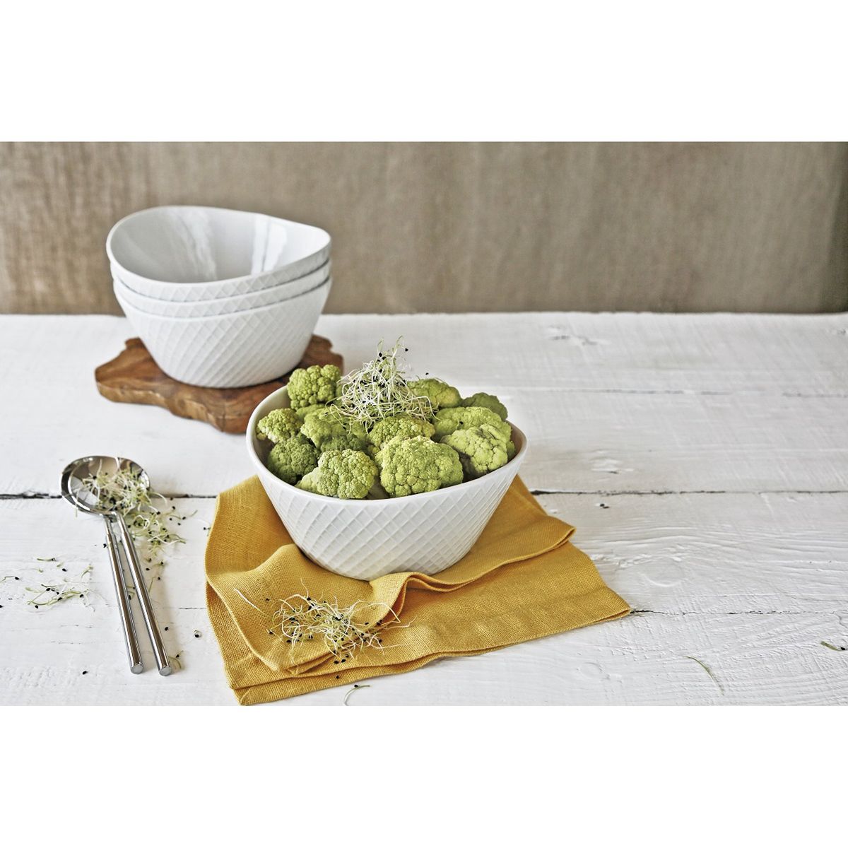 porcelain bowl from Over & Back is perfect for every occasion and every dish. From soup to salad, veggies to pasta, ice cream to fruit! The subtle embossed diamond pattern is a design detail that gives this bowl that little something extra.White Porcelain Serve Bowl with a diamond texture from overandback. Use these bowls for sides, salads, pasta, and more. The 4 bowls also nest for convenient storage. This is a beautifully textured serve bowl that will add flair to any serve collection. Item ships in a re-shipper for safety and does not come in a gift box.overandback Porcelain Serve Bowl, Diamond Texture, Set of 4, WhiteDurableOven safe up to 450 degrees FahrenheitMicrowave safeDishwasher safeMade in ChinaerroFeatures: