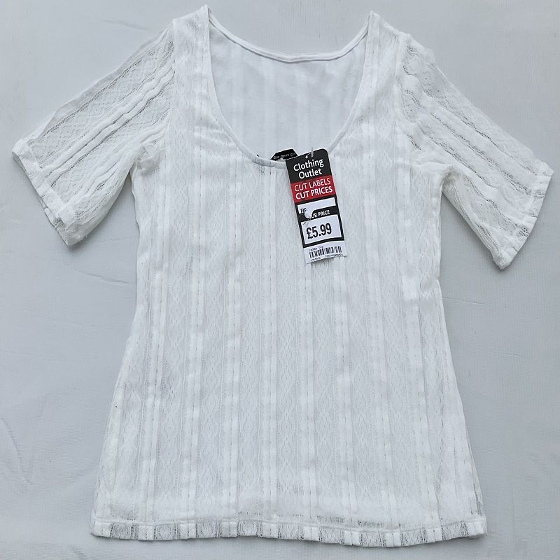 Round scoop neck fit short sleeves blouse and is lined under beautiful scoop back neckline fitted and stretch for added comfort great quality and perfect condition