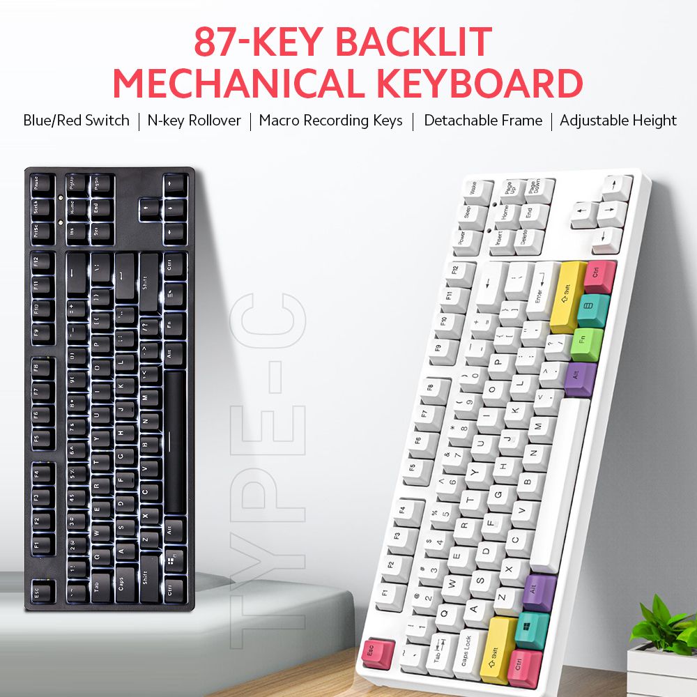 This backlit mechanical keyboard offers N-key rollover and blue switches, giving you great gaming and typing experience. With its detachable frame, it enables you to clean the keyboard easily. And it comes with 10 PBT keycaps, you can change the keycaps as you like.