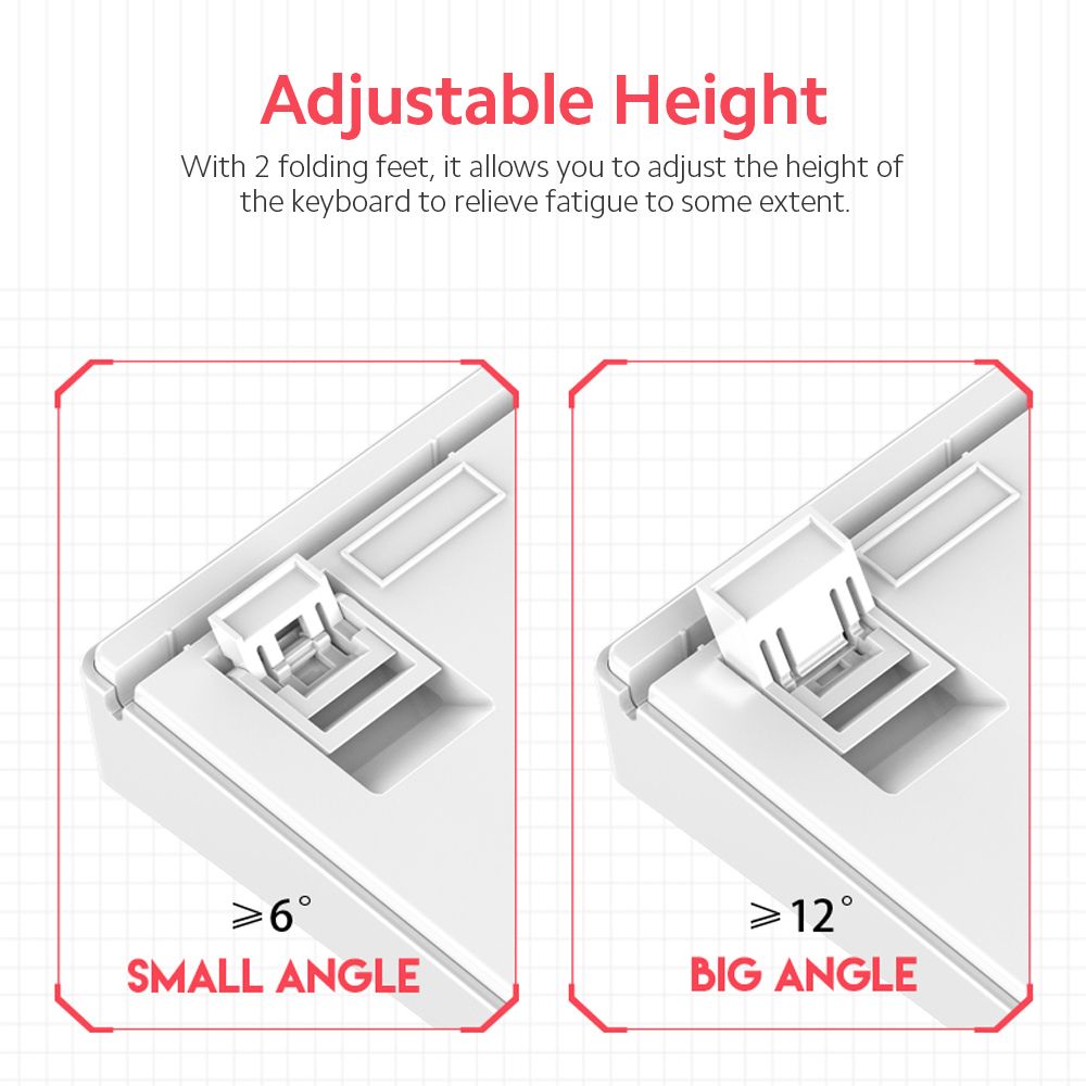 With 2 folding feet, it allows you to adjust the height of the keyboard to relieve fatigue to some extent.