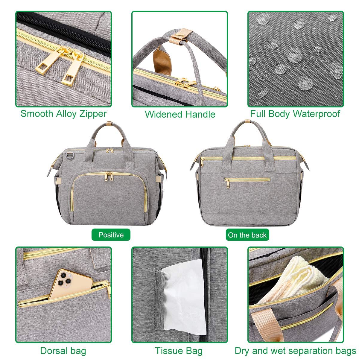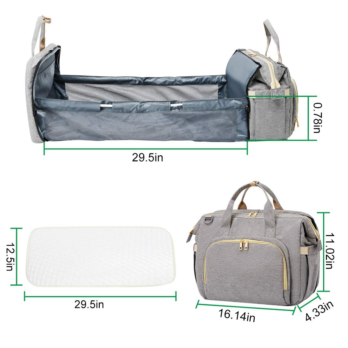 Product Description Diaper Bag Bag Pack Multifunctional Waterproof Travel Bag with USB Charge, Large Capacity Foldable Baby Bed for Baby Care Our baby diaper bag is so easy to carry, it can hang on the stroller for easy travel Suitable for 0-6months newborn infant baby A variety of recitations, stylish and beautiful baby travel bag Reflective strip at the bottom can effectively prevent dangers and ensure the safety of going out The usb charging function makes you no longer worry about the lack of battery power when going out Size: 32cm * 21cm * 43cm TYPE 1: TYPE 2 TYPE 4