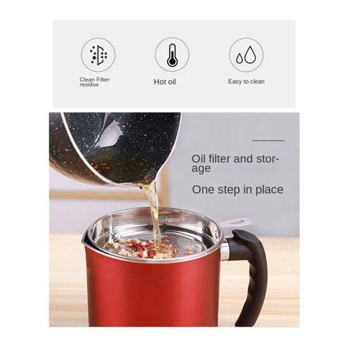 Kitchen Oil Container - The fine mesh strainer is fine enough to filter out old batter pieces from cooked item. The lip on this oil pot prevents dust falling into the oil and the non-slip coaster tray prevents oil spillage onto the counter top or range top. Small pour spout design works well to prevent leakage.