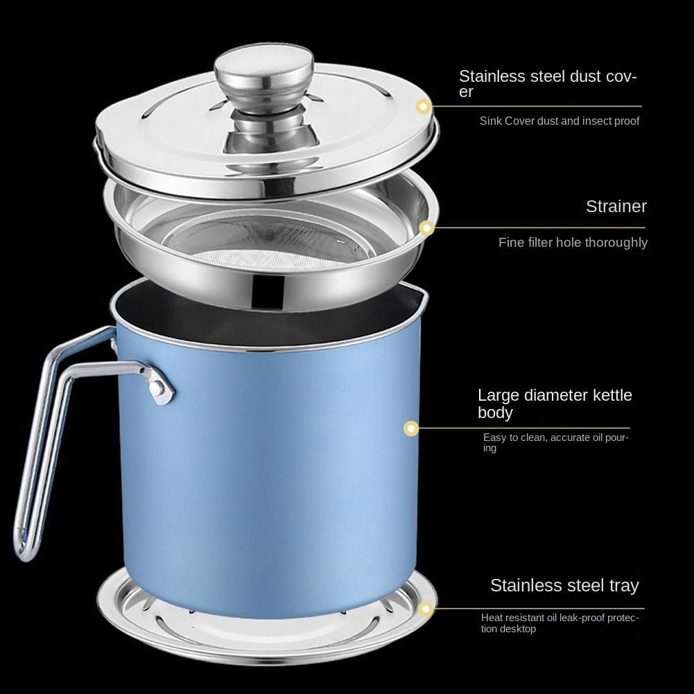 Fast oil filtering: The stainless steel filter screen is fine and uniform, and easily separates oil and impurities.