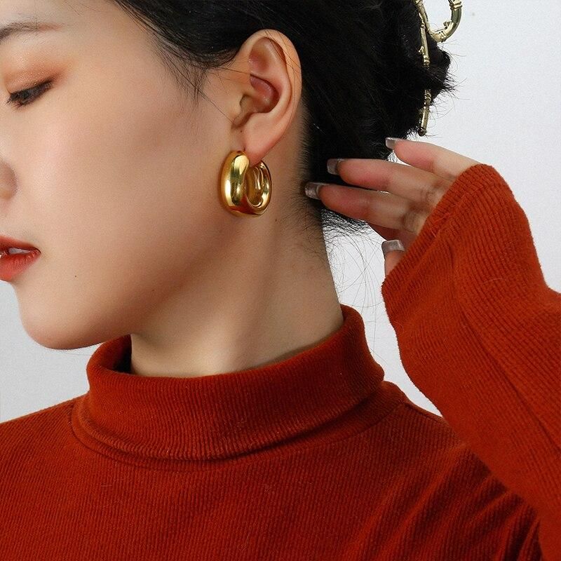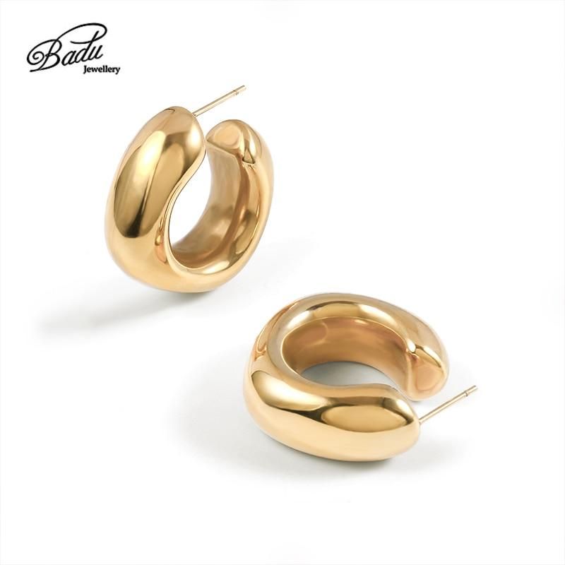 Buy Badu Chunky Gold Hoop Earrings Lightweight Silver Open C-Shaped Stainless Steel Earrings for Women 14K Real Gold Plated Jewellry in Nigeria