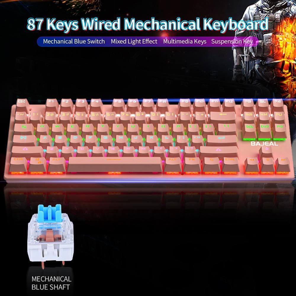 Buy BAJEAL 87 Keys Wired Mechanical Keyboard Mixed Light Mechanical Keyboard with Mechanical Blue Switch Suspension Button Blue in Nigeria
