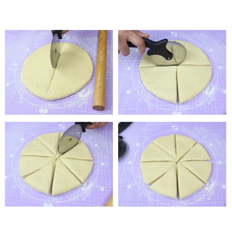 1.This mat does not move or bunches up as you roll out the dough, It stays exactly where you place it.
