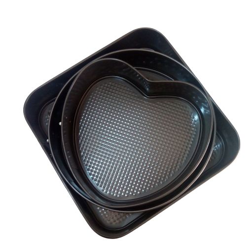 There different shape of cake pan i.e. heart shape, round and four corner shaped pan
