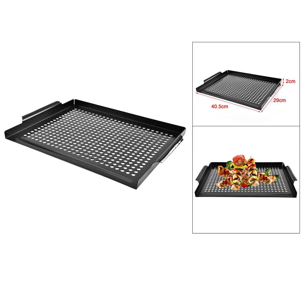 Non-stick coating on the surface, easy to clean.Made of carbon steel material, durable for use.Uniform small hole design helps you drip excess oil from food and make your diet healthier.Steel handles on both sides are easy to hold and store.Large capacity design, can grill fish, meat, seafood, bread etc.