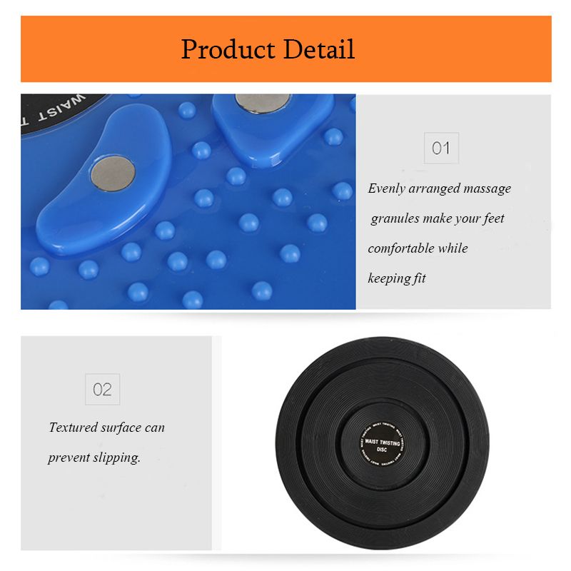 Specification: Material: ABS Color: s (optional) Diameter: 25cm/10in Thickne:3.5cm/1.4in Weight-bearing: 90kg Features: 1. ABS envmentally friendly material, tastele, durable and corrosion resistant, easy to clean and not deformed.Textured surface can prevent slipping. 2. Evenly arranged maage granules make your feet comfortable while keeping fit. 3. Portable, easy to carry and use.Suitable for home, office,school and indoor or outdoor sports. Package Included: 1 x Waist Twisting Disc Note: 1.Please allow slight dimension difference due to different manual measurement. 2.Due to the different monitor and light effect, the actual color of the item might be slightly different from the color showed on the pictures.