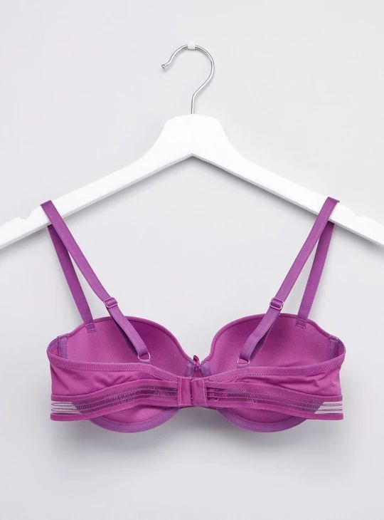 balconette bra. The adjustable straps along with hook and eye closure will lend the desired fit while the bow applique detail adds to its appeal. Also, the quality material will render a smooth feel on the skin.