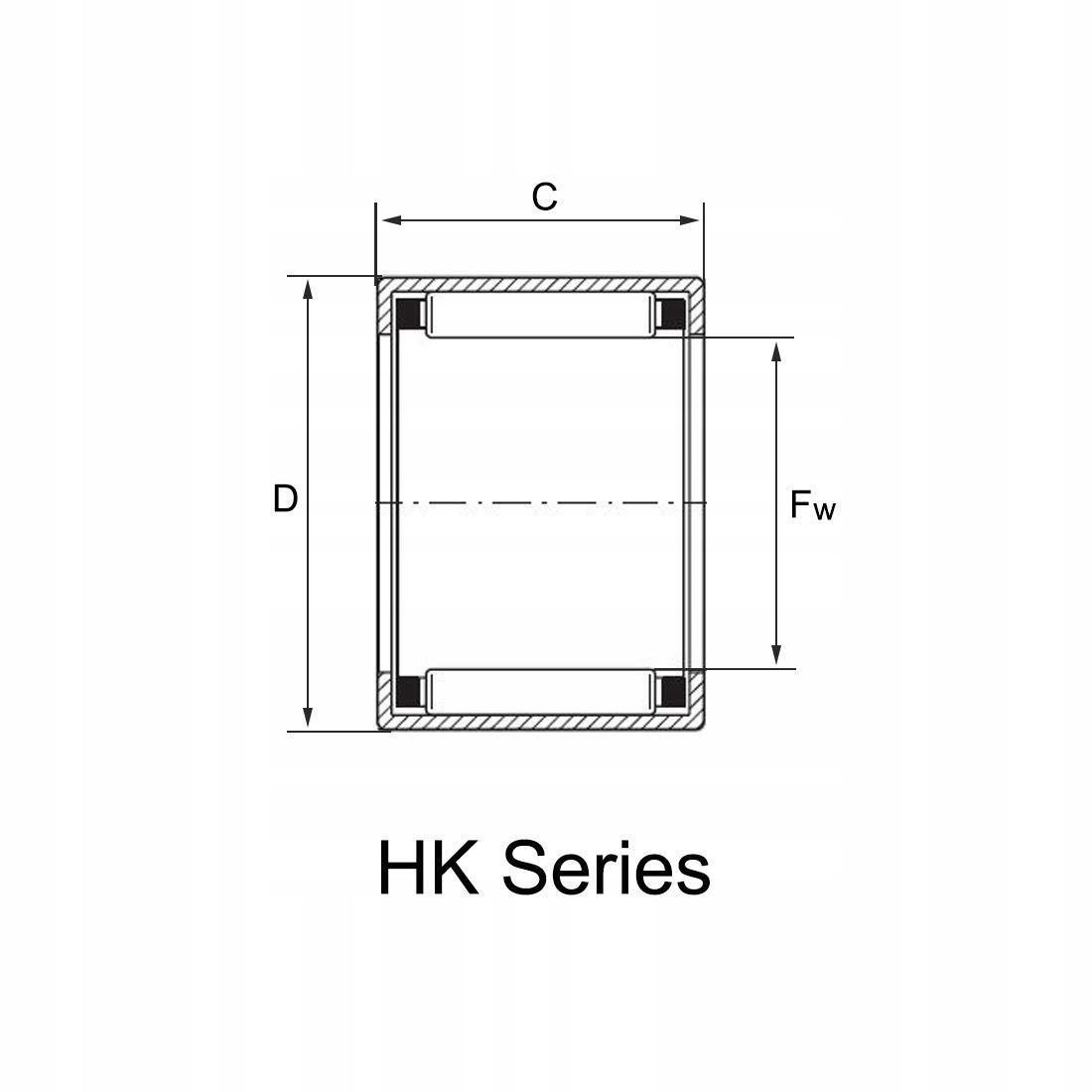 Model: HK1010 (bore diameter (Fw) = 10 mm, outside diameter (D) = 14 mm, width (C) = 10 mm).