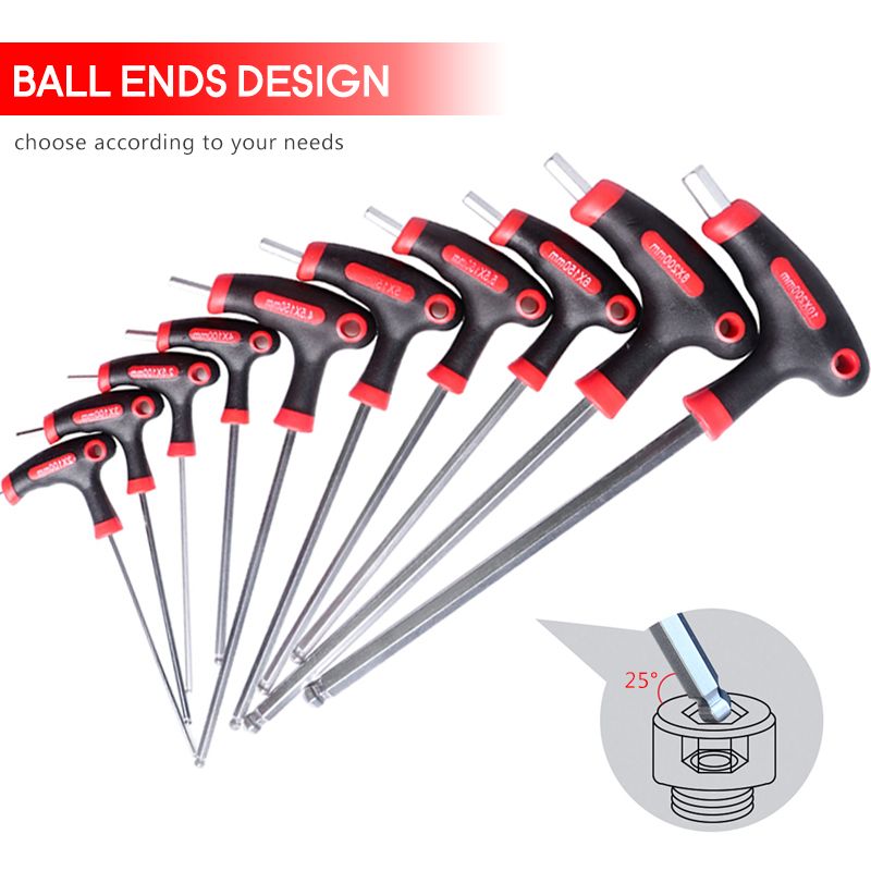 Feature: 1. It is easier to solve stubborn screws than a pure steel wrench. 2. Made up of good material,durable,good hardne and high strength. Description: 1. 100% and High Quality 2. Type : Allen Wrench 3. Type : Ball-end : 2,2.5,3,4,4.5,5,5.5,6,8,10 Torx : T9,T10,T15,T20,T25,T27,T30,T40,T45,T50 4. Scope of application: bicycles, motorcycles, automobiles repair.