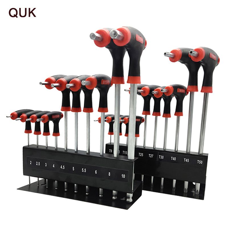 QUK T-Handle Hexagon Wrench 10 Pcs Set Universal Allen Key Torx Ball Spanner Screw Nut Driver For AutoMobile Repair Hand Tool