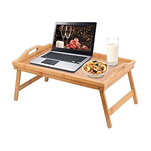 The breakfast tray is made of nature bamboo, which is sturdy and durable. The tray surface is finely polished without burrs, the bed tray with folding legs extended fully and they can lock in place perfectly without shake.