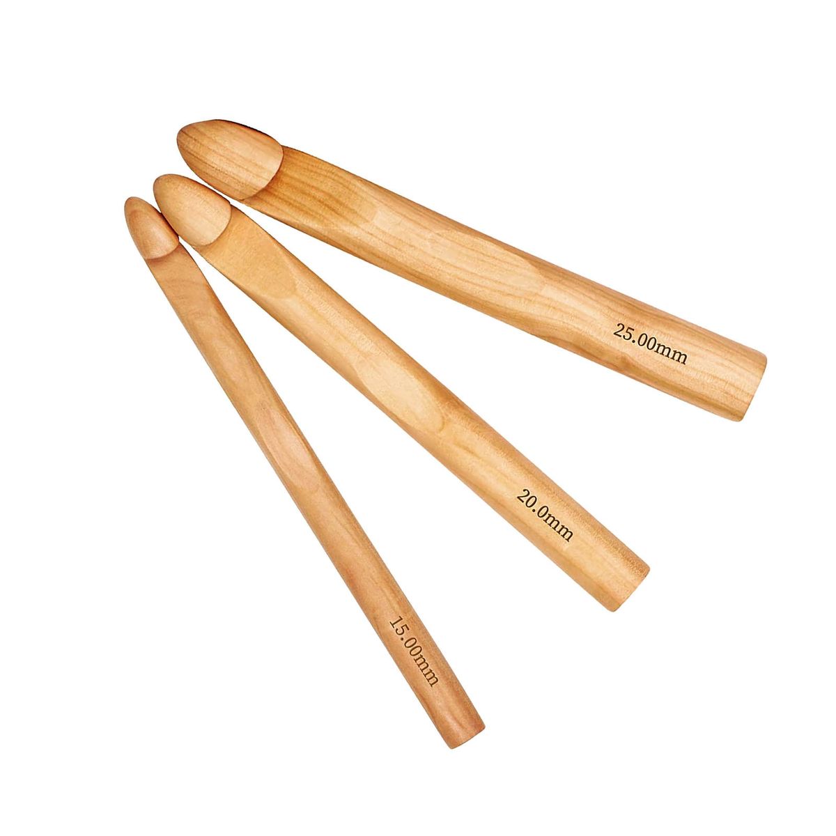The longer you use the wooden needles set, the smoother it becomes. It has an easy operation, and the large hooks are fine to work for bulky blanket thick big yarn rag rugs projects. The crochet surface is finished, so that nothing catches on it when crocheting.