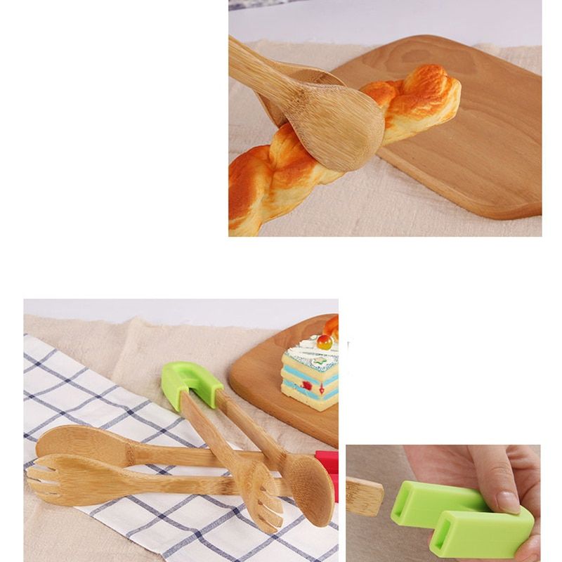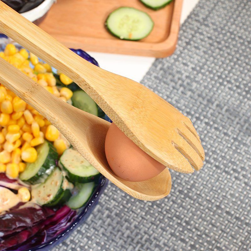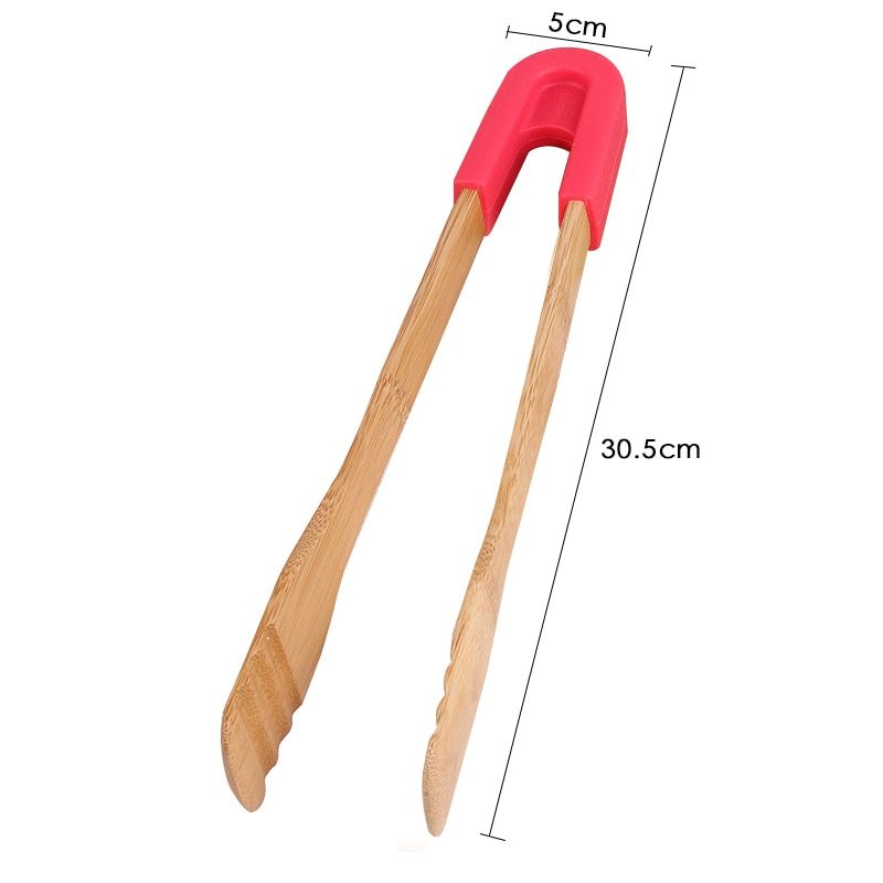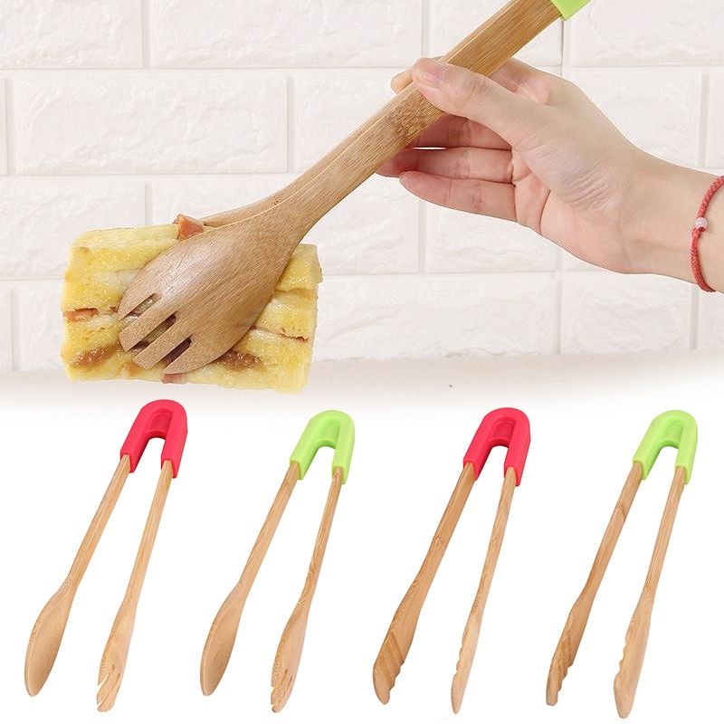 1X Bamboo Kitchen Tongs Service Tongs for Serving Appetizers Desserts Salads Bread Barbecue Food clip Buffet folder