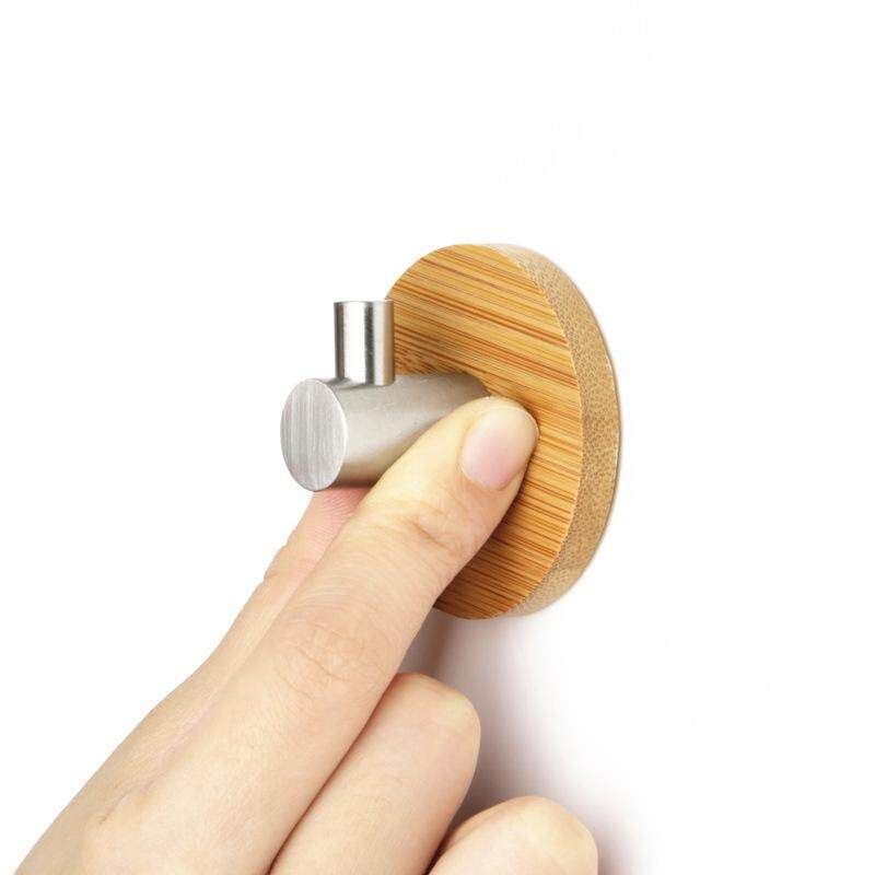 Product Name:Bamboo Stainless Steel Hooks Wall Door Clothes Keys Bag Hanger Holder Towels Shelf Kitchen Bathroom Organizer 3 Sizes