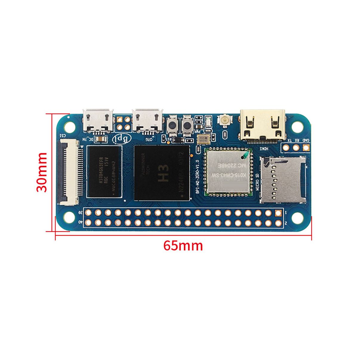 product description: for Banana pi BPI-M2 Zero is an extremely small open source single board computer, designed using the Allwinner H2 + chip solution, or you can directly use the Allwinner H3, the size is exactly the same as Raspberry pi Zero W, Support onboard WIFI and Bluetooth, 512M memory, Mini HDMI interface.