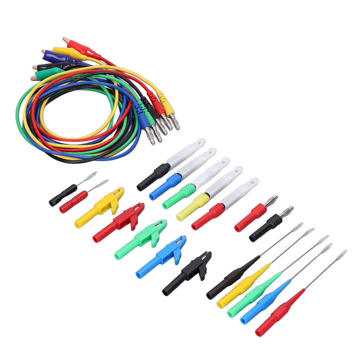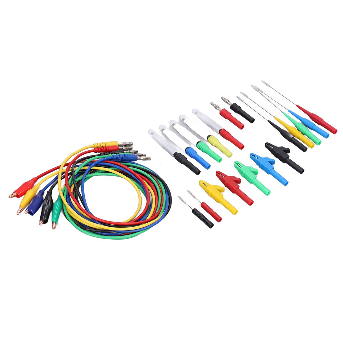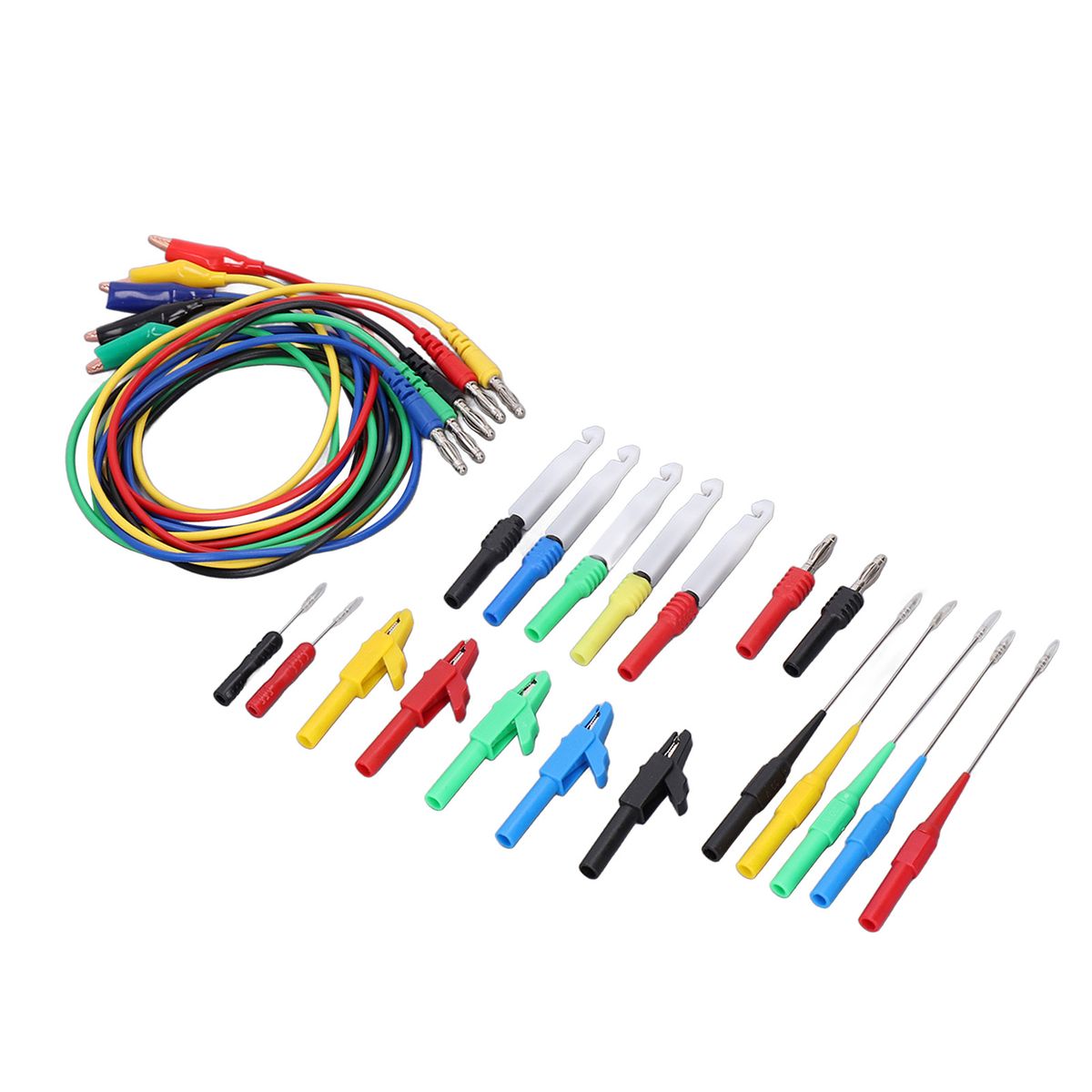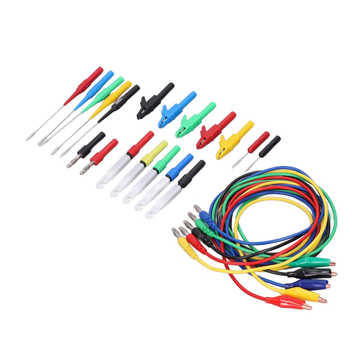 Package List:5 x Test Clip Connecting Wire (Red, Black, Yellow, Blue,Green)5 x Puncture Probe with Shell (Red, Black, Yellow, Blue,Green)