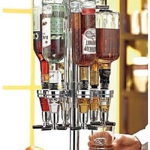 Dispense Exactly 1 or 1.5 Ounces At The Touch Of Your Hand Spring Loaded Retainers Hold Bottles Securely In Place Instant Access. Bottle Easily Attaches to a shelf Press Tumbler Against Spokes To Dispense A New Drink Featured In Five Star Restaurants Design Award For Function.