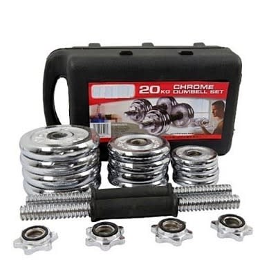A&s Chromed Iron Adjustable Dumbbell Set - 15kg Each + Free Ankle Weight