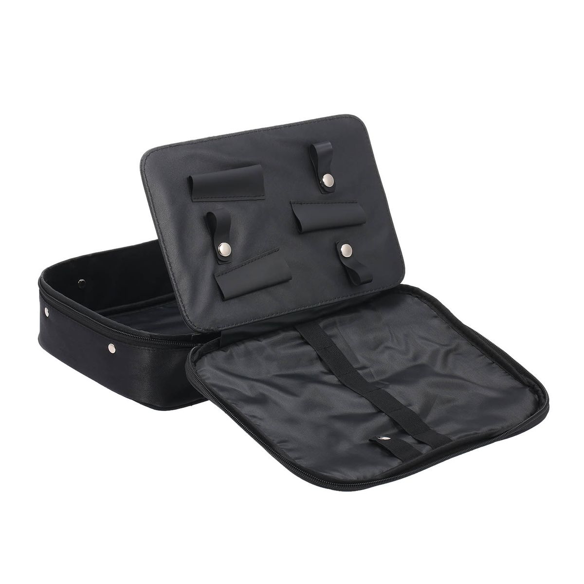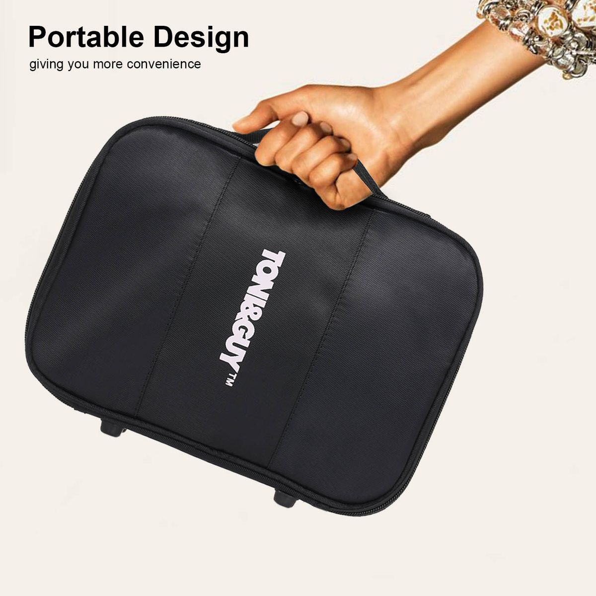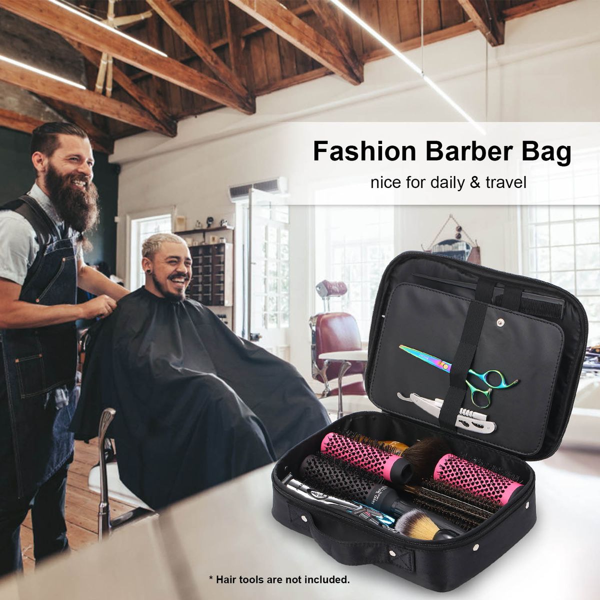 Large capacity, you can fit all of your hair tools (flat irons, curling iron, scissors, combs, brushes, etc.) into this bag.