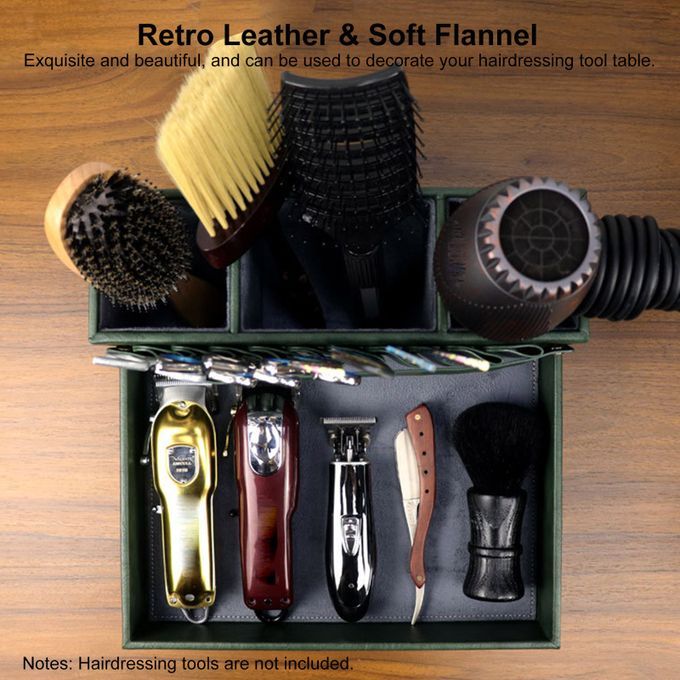 The multifunctional hairdressing tool storage adopts retro leather and soft flannel, which is exquisite and beautiful and can be used to decorate your hairdressing tool table.