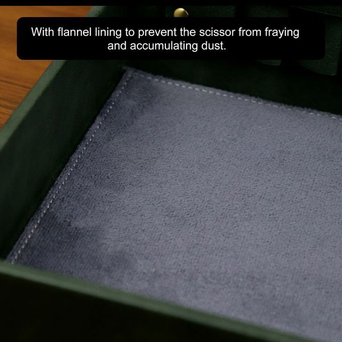 The scissor storage box is designed with flannel lining to prevent the scissor from fraying and accumulating dust and effectively protect the haircutting tools.