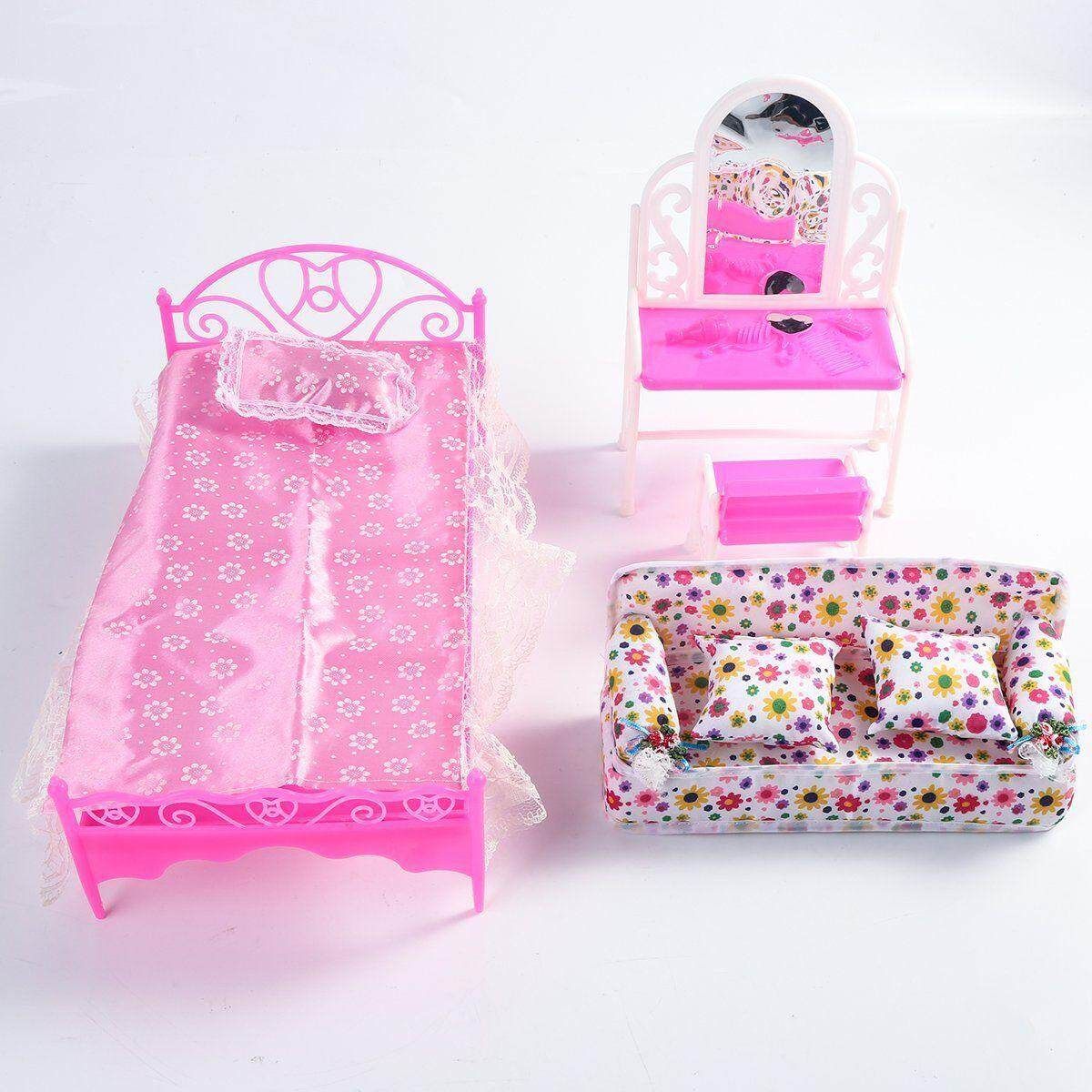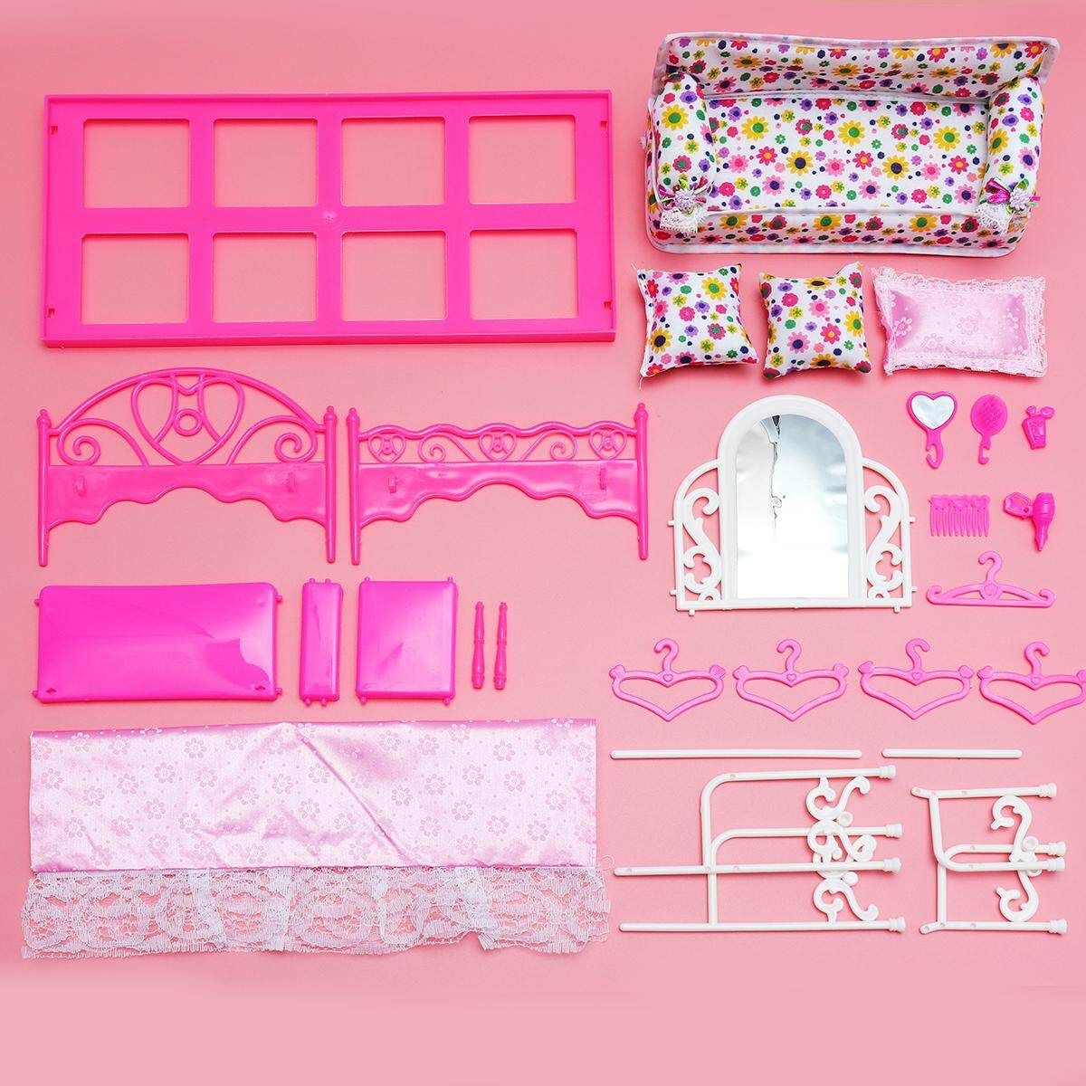 1 x Bed 1 x Bed Sheets 1 x Bed Pillow 1 x Sofa 2 x Sofa Pillow 1 x Dressing Table 1 x Chair 5 x Dressing Kits 5 x Hanger(2 styles, ) (not included decorations)