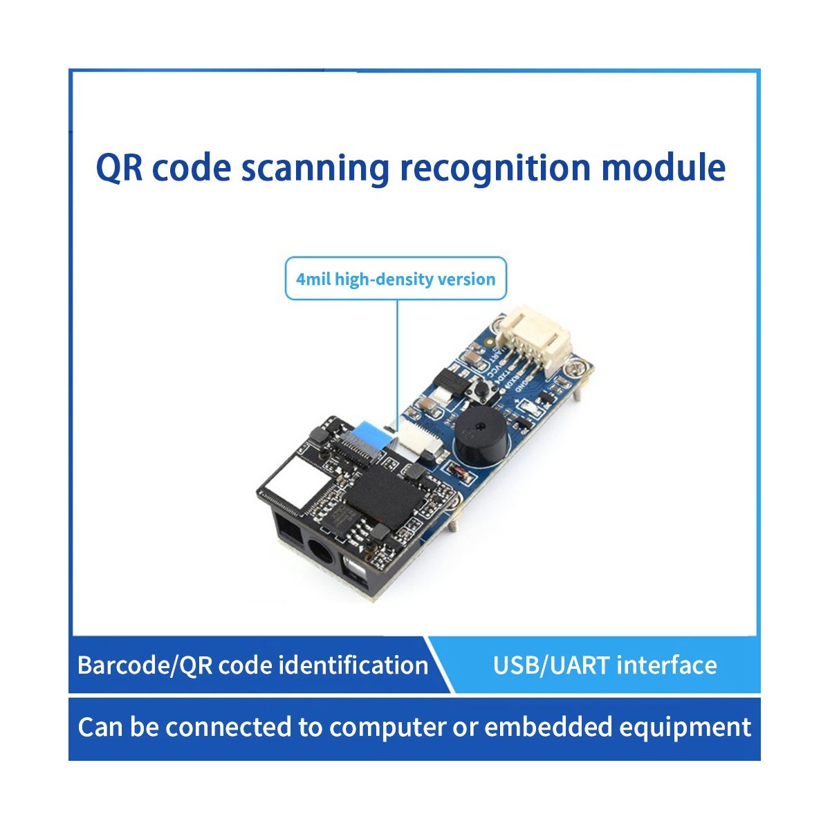 Detailed Information About The Product:Barcode Scanner Module (B) is a barcode QR code scanning and recognition module. Through the intelligent recognition algorithm, it can quickly and accurately read -dimensional code and two-dimensional code on paper or screen, support multiple barcode formats, and support 4mil high-density barcode scanning.