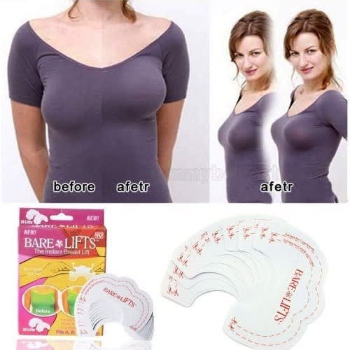 Instant Bare Breast Lifts are completely strapless solution to lifting your breasts while ensuring a naturally perky look in virtually any outfit. With Instant Bare Breast Lifts, you can lift each breast and re-align your nipple to a higher position, even if you are larger than A-D Cup. Instant Bare Breast Lifts will reduce pulling and slipping of the straps when worn with a bra and are also a simple solution to the inches back bulge. They can even be worn for up to 24 hours. Instant Bare Breast Lifts are the perfect solution for 24-hour breast support that is virtually invisible. Instant Bare Breast Lifts are very comfortable and easy to use